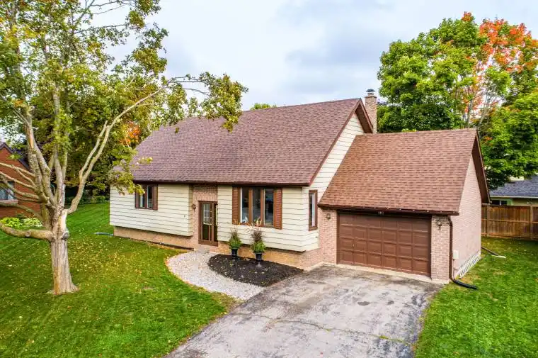 Situated on a pie-shaped lot in a desirable north-end cul-de-sac, this updated 2+1 bedroom, 3 bathroom bungalow is just steps from schools and parks. The open-concept kitchen features a large granite island, perfect for family meals and entertaining. The main floor offers two spacious bedrooms, including a primary suite with a walk-in closet and a 3-piece ensuite, plus a full 4-piece bathroom with a skylight. The lower level boasts high ceilings, with plenty of natural light, a third bedroom, and an additional 3-piece bathroom, with plenty of space to add another bedroom and a family room if desired. An attached 1.5-car garage provides convenient parking and extra storage. Recent upgrades ensure peace of mind and efficiency, including: new roof (2024/2025), skylight (2024), eavestroughs (2025), deck (2024), flooring on main floor (2024), sliding glass door (2025), basement waterproofing (2023), GenerLink hookup (2025), and new vinyl siding to be installed before closing.