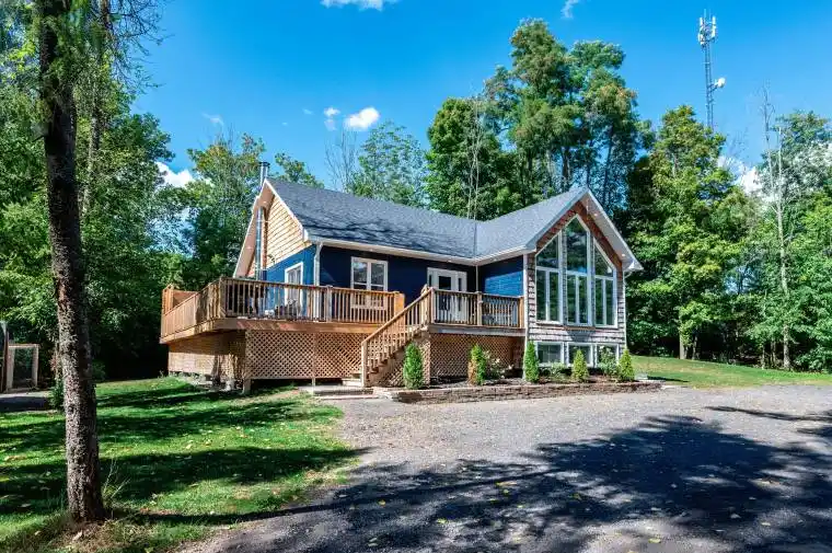 At the end of a quiet country street in the heart of Marlbank lies a home that feels like a hidden treasure. Surrounded by tall trees and set on a private lot, this chalet-style retreat offers the perfect blend of rustic charm and modern comfort. Built in 2018, the home welcomes you with soaring ceilings and a wall of windows that flood the open living, dining, and kitchen areas with natural light. Every detail feels warm and inviting, designed for gathering with loved ones or simply enjoying the peace of your surroundings. Two bedrooms and a full bathroom are conveniently located on the main level. Downstairs, a separate entrance leads to a fully finished in-law suite, ideal for multi-generational living, hosting guests, or offsetting the mortgage with rental income. This flexibility makes the home as practical as it is enchanting. Outside, the property whispers of country living at its best. A large deck, fenced area with a small-animal shelter, chicken coop, and wood shed invite a more self-sufficient lifestyle, while space to park up to 10 vehicles ensures there’s always room for friends and family to share in the experience. Here, life moves at a gentler pace. In the close-knit community of Marlbank, this home is more than a place to live, it’s a place to belong.