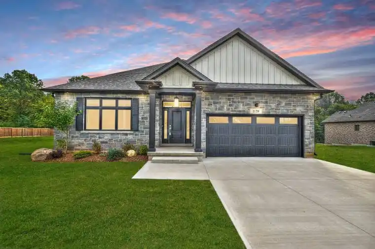 Be the first to call this 2022 bungalow – your home! With an attached double garage and a sleek concrete driveway, this residence makes a striking first impression. The stone facade paired with trendy Hardie board siding sets the tone for timeless curb appeal, all tucked into the charming hamlet of Fenwick. Inside, you’ll find 1,785 sq. ft. above grade, designed with style and comfort in mind. The home features three generously sized bedrooms, including a luxurious 5-piece ensuite with a freestanding soaker tub, double sinks, and a walk-in tiled glass shower. The open-concept kitchen and great room are ideal for entertaining, with a crisp white kitchen, qranite white flex island seating four, on-trend pendant lighting above, and a soft gray subway tile backsplash. No expense spared with engineered hardwood floors throughout, central vacuum, hot water on demand, HRV and large encased windows with transom above for lots of natural daylight. The great room is anchored by a white gas fireplace, and patio doors lead to a covered outdoor patio overlooking a private, tree-lined backdrop – perfect for relaxation and tranquility. The unfinished basement offers endless potential, with a rough-in for a 3 piece bath and ample room for expansion or storage. who will be the lucky one? This beauty is priced to move – don’t miss it!
