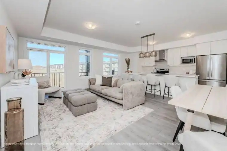 Brand new end-unit 3-bedroom condo townhome by Fusion Homes in the highly desirable Solterra community, South Guelph! This bright, spacious suite offers a modern open-concept layout with an upgraded kitchen featuring quartz countertops, stainless steel undermount sink with designer faucet, flush breakfast bar, soft-close cabinetry, and stainless steel appliance package. The great room boasts upgraded laminate flooring and a walkout to a covered patio, perfect for relaxing mornings or serene evenings under the stars. Upstairs, three bedrooms provide ample closet space, with two full bathrooms showcasing quartz counters, upgraded fixtures, and a frameless glass shower door. Stylish finishes continue throughout, including upgraded hardware and flooring in the bedrooms and hallways. Enjoy the convenience of living minutes from the University of Guelph, Hwy 401, Stone Road Mall, transit, parks, trails, golf courses, and everyday amenities. Move-in ready. Be the first to call this stunning townhome your own! Get peace of mind knowing that Fusion Homes delivers a very high standard of construction, extended builder warranty that averages twice the industry standard, and ensures every detail of the home is meticulously inspected before delivery. Discover the art of elevated living.