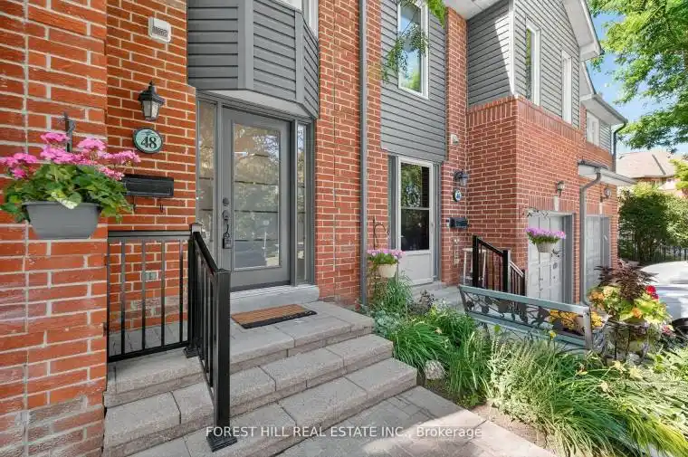 Welcome to 48 Beaumont Place the home you’ve been waiting for in the heart of Thornhill! This beautifully maintained and recently updated 3-bedroom, 3-bathroom split-level condo townhouse offers the perfect opportunity for downsizers, first-time buyers, or families looking for a move-in-ready home in a quiet, private community. This is one of the larger layouts in the complex the second largest model, offering approximately 2,100 sq ft of total living space. Featuring a bright open-concept layout, fresh paint, new front door, and an updated finished basement with high ceilings, fireplace, and upgraded laundry room. Walk out to a spacious deck and lush, private backyard ideal for relaxing or entertaining. Enjoy the comfort of a low-maintenance lifestyle: maintenance fees include water, cable, internet, air conditioning unit, exterior building insurance, and full grounds upkeep, including beautifully landscaped green spaces throughout the complex a rare offering and a step above standard condo living. Located just steps from top-rated public and private schools, shuls, shopping, kosher groceries, transit, and with quick access to Hwy 407 & 7. A unique opportunity to downsize without compromise or upgrade your lifestyle without the hassle.