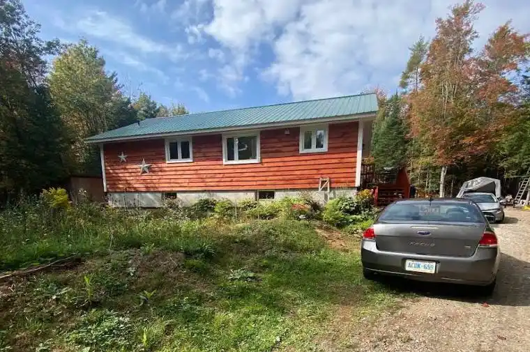3 Year 2 bedroom, 2 bath home with 16.5 acres off GRID. Wood accents throughout the home with open concept and hardwood flooring. Triple glazed windows and total privacy with a winding driveway from a year round paved road 15 minutes from Bracebridge. This home has a full insulated dry basement. Hot water on demand, Propane forced air furnace, Airtight woodstove with fresh air access. The woodstove is WETT certified the keeps the home extra warm. Two large solar panels that runs the home with power. Outside there is a 12,000 kw Generator that will also run the home if you need extra power. Drilled well is 120 feet deep with 13 gpm so ample water for your family. Steel roof so now shoveling off the roof. The septic is a media filtering system. The solar system is a 10,000 kilowatt microgreen system with 8 AGM Batteries. There is large Sea Container storage 0ver 9 feet high is a good storage for your toys and tools inside. With 16.5 acres with lots of property to hike and play with your children.