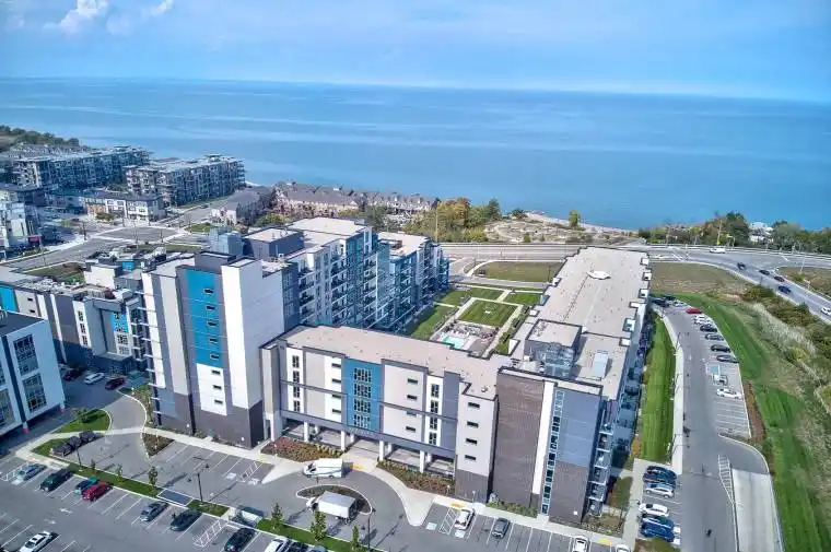 Welcome to Aquazul Lakeside Condominiums in Grimsby-on-the-Lake! This stunning 1 bedroom + den, 1 bathroom suite offers a perfect blend of modern living and resort-style amenities. Situated on the 6th floor, this home boasts soaring ceilings and unobstructed views of Lake Ontario through floor-to-ceiling windows, filling the space with natural light and breathtaking scenery. The thoughtfully designed open-concept layout features a sleek kitchen with stainless steel appliances, and an island with seating, seamlessly connecting to the bright living and dining area. The spacious primary bedroom includes a walk-in closet, and access to the 4-pc restroom while the den provides a flexible space for a home office or guest room. Step out onto your private balcony and take in panoramic lake and poolside views. Enjoy first-class amenities including an outdoor pool, landscaped courtyards, games and media rooms, fitness centre, meeting/party room, and BBQ areas. Residents also benefit from visitor parking, EV charging stations, and easy highway access to the QEW – perfect for commuters to Hamilton, Niagara, or the GTA.Located steps to waterfront trails, cafes, and restaurants, this condo offers a vibrant lifestyle in one of Grimsby’s most desirable lakefront communities.