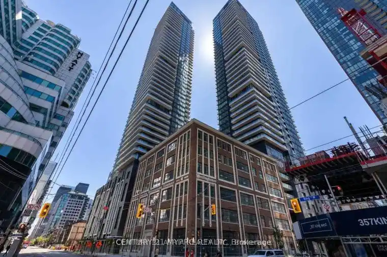 Live in This Functional 1 Bedroom + Den. The Den can be used as a home office. North Facing. Open Concept Kitchen, Built-In Stainless Kitchen Appliances, Stacked Washer/Dryer, Large Windows/Closets. 24 Hours Concierge. Roof Top Garden/Terrace/BBQs, Indoor Swimming Pool, Gym, Lounge, Party room and more. Centrally Located in The Heart Of the Entertainment, Waterfront and Theatre District. PERFECT WALK SCORE! Minutes Walk to PATH Network, TTC Street Bus, Rogers Centre, Scotiabank Arena, Theatres, Banks, Shops, Bars, Restaurants and More!