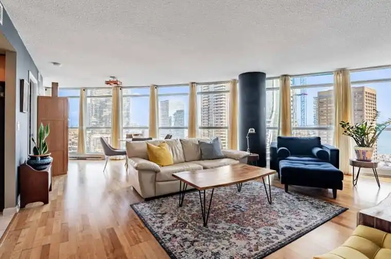 A contemporary 855 sq ft 2 bed, 2 bath condo in the heart of downtown Toronto with beautiful sunny south East Views of the city & Lake Ontario. This thoughtfully designed suite boasts an open-concept layout with floor-to-ceiling windows that bathe the interior in natural light while showcasing sweeping city & Water views. The kitchen is functional, with plenty of storage and flows seamlessly into the main living and dining area, creating a perfect setting for both everyday living and entertaining. The primary bedroom is bright and inviting with a wall of closets and offers a sense of calm and privacy, while a private balcony provides the ideal spot to enjoy fresh air and vibrant city vistas. There is also a 2nd Bedroom and a full 2nd bathroom with a newer washer & dryer (2024). Life at 18 Yonge offers more than just a home its a complete lifestyle. The building provides 24-hour concierge, a state-of-the-art fitness centre, an indoor pool, hot tub, sauna, and a rooftop terrace with barbecues and a putting green. Residents also enjoy access to beautifully appointed lounge spaces, meeting rooms, and visitor parking. Please note: Includes 1 car parking near the elevator. Pet restriction is 1 cat or 1 dog & short term rentals are allowed. Beautiful hallway renovation is almost complete. The location is unmatched. Nestled between Torontos Financial District and the waterfront, this address places you within walking distance of Union Station, Scotiabank Arena, the CN Tower, and an endless array of restaurants, shops, and cultural destinations. With direct access to the PATH network and the Gardiner Expressway just minutes away, commuting and exploring the city couldnt be easier. Embrace the best of downtown living in a vibrant, amenity-rich community.