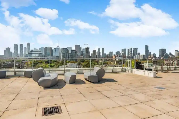 Exquisite Loft Living in Corktown Nestled in one of Toronto’s most dynamic neighbourhoods, this sophisticated loft offers an exceptional blend of contemporary design and timeless elegance. Towering 10 foot ceilings, exposed architectural ducts, and a thoughtfully curated open concept floor plan create an atmosphere of refined urban living at its finest. The residence features two well- appointed split bedrooms, an additional den, and over 1,000 sq. ft. of indoor – outdoor space. Polished concrete floors flow seamlessly into a bespoke kitchen with marble – clad centre island and top-tier appliances. Bathed in natural light from its sun-filled southern exposure, the home extends to an oversized private terrace. Combined with locker and parking, this offering combines industrial charm with modern comfort in one of city’s most vibrant enclaves. A world of magnificence awaits.