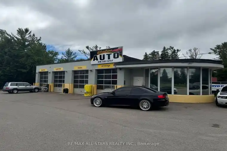 Located at 14806 Woodbine Avenue in Whitchurch-Stouffville, this 4-bay mechanic shop offers a fantastic opportunity on a spacious .799-acre lot with 174 ft frontage and 201 ft depth. Zoned Commercial Village (CV), the property features a stucco exterior, 10′ high doors, and one extra-deep bay accommodating two cars. The fenced compound and office space add to its functionality. Situated on busy road close to 404 and Aurora sdrd. in the village of Vandorf, this location combines convenience with potential. Seller is aware of soil contamination; property sold as is.