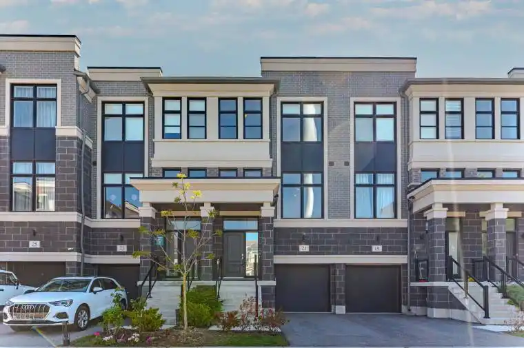 Welcome To This Modern Townhouse With Backyard, Offering A Perfect Blend Of Style, Space, And Comfort. Featuring Extra-Large Windows That Flood The Home With Natural Light, This Property Boasts 10Ft Smooth Ceilings With Pot Lights On The Main Floor And 9Ft Ceiling On Upper Level. Enjoy Laminate Flooring Throughout. The Open-Concept Living And Dining Area Is Perfect For Entertaining Or Relaxing With Family. The Upgraded Kitchen Equips With Quartz Countertops, Stainless Steel Appliances, Center Island With Breakfast Bar, And Backsplash. Spacious Bedrooms And Two Full Bathrooms On Upper Level. Professionally Finished Basement, Completed By The Builder, Offers Additional Living Space Perfect For A Family Room, Office, Or Home Gym. New Range Hood. Top Ranking Bur Oak Secondary School. This Home Combines Modern Design And Functional Layout In Prime Location.