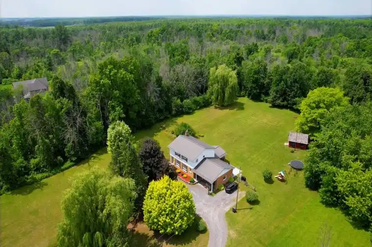 Welcome to this charming country retreat set on 2.98 acres of natural beauty, just a short drive from Cornwall. A long, private laneway leads you to a tranquil setting complete with a scenic pond home to turkeys, fish, and frogs surrounded by mature trees, including apple trees, that provide both privacy and beauty.Inside, this well-maintained home offers comfort and convenience at every turn. The main level features a cozy propane fireplace in the living room, a spacious dining area, a bright kitchen that overlooks the screened-in porch and expansive backyard, and a convenient 2-piece bathroom. Main-floor laundry, central vacuum, and interior access to the attached garage add extra ease to daily life.Upstairs, youll find four generous bedrooms and a full bathroom. The primary suite is a standout with his-and-hers closets, a cedar closet, and a private 3-piece ensuite.The fully finished basement includes a utility room, ample storage space, and direct access to the garage ideal for practicality and organization. Additional features include a durable metal roof and a new heat pump (2024) for efficient year-round comfort. A backyard shed adds even more outdoor storage.This is a rare opportunity to enjoy peaceful, scenic country living with all the modern features just minutes from town. Come see it for yourself! 24 Hour Irrevocable on all offers.