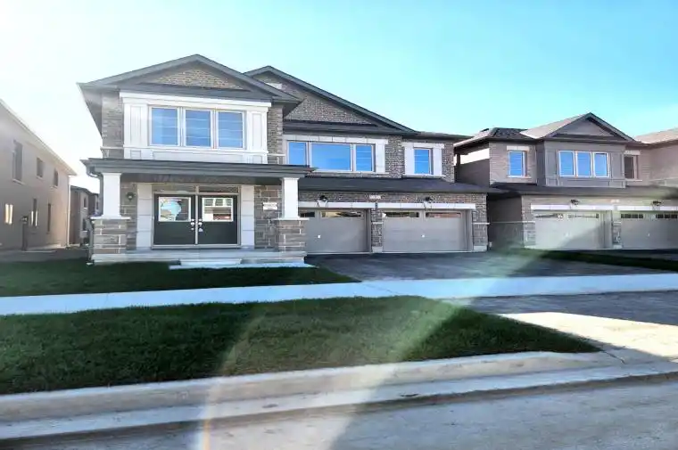 Welcome to 5 Fire King Drive, located in one of Whitbys most prestigious communities. This brand new, detached 5-bedroom, 3.5-bath home offers a spacious open-concept layout ideal for both families and professionals. The modern kitchen features brand new stainless steel appliances, a walk-in pantry, kitchen island with quartz countertops, and a stylish ceramic backsplash, with convenient walk-out access to the rear yard. Enjoy cozy evenings in the great room with a gas fireplace, while the second-floor laundry equipped with washer and dryer adds functional ease. The primary bedroom boasts a walk-in closet and a luxurious 5-piece ensuite with a free-standing tub, glass shower enclosure, and double vanity. Additional baths include a 5-piece semi-ensuite and a 4-piece main bathroom. Quality finishes throughout include hardwood floors and ceramic tiles on the main level, plush broadloom upstairs, and a beautiful wood staircase. Additional features include a mudroom, direct access from the house to garage, and a separate side door entrance. Comfort is assured year-round with central air conditioning and a tankless water heater. Perfectly situated with easy access to Highways 412, 401, and ETR407, plus nearby shopping, schools, parks, public transit, and restaurants. This pristine home is ready to welcome you.