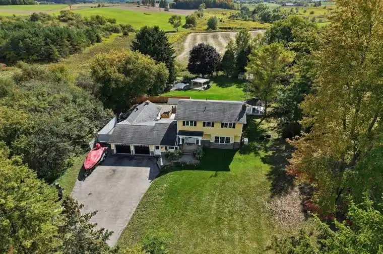 This is not just a house its a lifestyle. Tucked away on nearly an acre of scenic countryside, this remarkable residence blends timeless craftsmanship with modern comfort. Every corner showcases an unmatched level of care, from the finely detailed millwork and elegant wainscoting to the chef-inspired kitchen designed for both function and flair. Sunlit windows frame serene views you’ll cherish day after day. The luxurious primary suite offers a peaceful haven with its own lounge or office area, perfectly positioned to capture sweeping southerly vistas. Designed for relaxation and entertaining, the home features a sparkling swimming pond, a sprawling multi-level deck with automated awning, and thoughtfully landscaped outdoor spaces that invite year-round enjoyment. Car lovers will be captivated by the heated, insulated 3-car garage complete with a hoist and rear bay door all accessible by a private laneway with gated parking. Additional upgrades such as a newly renovated main bath, standby generator, and custom built-ins around the cozy fireplace elevate both style and practicality. If needed can easily be converted back to a 4 bedroom. Surrounded by nature yet close to The Bruce Trail, Woodington Lake Golf Course, and the charming town of Tottenham, this one-of-a-kind property offers the perfect balance of tranquility and convenience. A rare opportunity to own a residence where quality, character, and comfort come together.