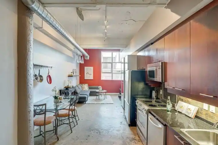 This stunning fully furnished 1-bedroom loft in the historic Merchandise Lofts offers the perfect blend of space, comfort, and authentic urban living. The exceptional floor plan features a spacious primary bedroom with a semi-ensuite spa-like bathroom, providing a private retreat in the heart of downtown. The open-concept living area boasts soaring ceilings, concrete floors, exposed ductwork, sliding barn doors, and ample space for both relaxing and entertaining. This is loft living at its finest in a prime downtown location! Building amenities are extensive and include 24/7 concierge/ security, guest suites, a spacious gym, basketball court, party room, saunas, indoor pool, & rooftop BBQ terrace with great views. There is also a convenient 24-hr Metro grocery store on the ground level.