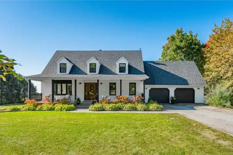 Welcome to your modern farmhouse retreat, surrounded by scenic farmland and offering a peaceful escape from city life. Set on a one-acre lot, this thoughtfully updated home blends contemporary style with everyday functionality.A charming covered porch welcomes you as you arrive, perfect for peaceful moments or greeting family and friends. Inside, you’ll find over 2,300 square feet of finished living space, along with a spacious unfinished basement. With 3 bedrooms and 3 fully renovated bathrooms, there is plenty of space to relax or entertain.The main floor offers a flexible layout that includes a bright living room, a separate office (or formal dining or playroom), a cozy family room, and a convenient laundry area. Sunlight pours in through large rear-facing windows, showcasing picturesque views of the private backyard. The entire home has been updated from top to bottom, including brand new flooring throughout in 2023.Upstairs, two generously sized bedrooms, a renovated four-piece bathroom (2018), and a cozy reading nook provide comfortable living space. The spacious primary suite features a walk-in closet, a newly renovated ensuite (2024), and room for a private seating area.Step outside to enjoy a backyard oasis with a newly finished deck (2022), surrounded by mature trees and open farmland. Evenings can be spent around the fire pit while the kids play and swim, creating the perfect summer scene.This home offers rural tranquility with modern updates and is located just minutes from town. Recent upgrades include heat pump (2025) windows, doors, soffits and eaves (2018), fireplace insert, lentil and chimney liner (2019), powder room (2020), well pump (2022), water heater (2023), water softener (2023), washer and dryer (2023), dishwasher (2024), and ensuite bathroom (2024).This is more than just a home. It is a lifestyle designed for comfort, connection and lasting memories.
