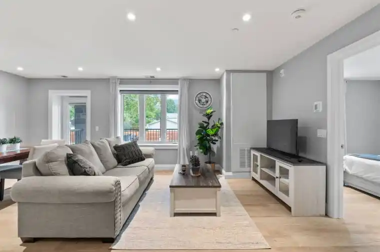 Introducing The LINDEN, a bright and spacious 2-bedroom, 2-bath suite in the newly built Riverside Apartments. Perfectly named, this complex backs onto the beautiful Maitland River, with a traveled pathway between, and is ideally located on Victoria Street in the heart of Wingham. Designed for a maintenance-free lifestyle, The LINDEN offers: Open-concept layout with bright, modern finishes, abundant natural light throughout, in-suite laundry for convenience, ample storage space, 2 full bathrooms for comfort and function. Living here means enjoying the perfect balance of peaceful surroundings and everyday convenience. The building also offers electric car charging, in-building post boxes, fitness facility, in-building storage, and a common room for gathering with larger groups. Riverside Apartments are within walking distance of downtown shops, dining, and amenities, while the town of Wingham itself provides everything you need from grocery and medical facilities to schools, community trails, and a recreation complex with pool, arena, and fitness facilities. Located in North Huron Township, Wingham is just over an hour from London and Kitchener-Waterloo and a short drive to Lake Hurons beaches.