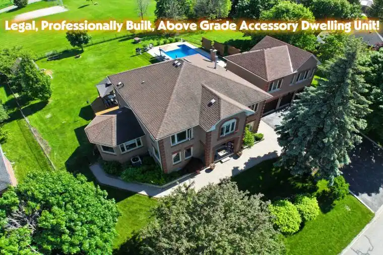 Need Space? 6219sqft (MPAC). Legal Above Garage completely Separate Apartment $350,000 completed 2025. 6+1 br’s, 4.5 baths, 2 Kit, 4258 SqFt MPAC above grade +1911sqft bsmt (mpac). Cedar Deck w/2 Gazebos O/L 20′ x 40′ Pool, Hot Tub & Park. Beautiful, huge Chef Kitchen, High end Appliances, Dacor, Miele, Bosche. 28 Cabinets & 28 drawers + fully shelved W/I Pantry. 8′ centre island, 2 full size sinks & Faucets (I love this!), 3″ Quartz counters, Very Bright, well lit Kitchen, Samsung Chef Fridge, 6 Burner Gas Range for the Master Chef. Italian 10,000 CFM vent hood. Walks out to Huge outdoor Living space & Backyard Entertainment Area. Huge Dining Area in Kitchen for big parties + 8′ Breakfast Bar. Family Room w/ wood fireplace. Wrap around windows in formal dining room w/ B/I cabinetry & freezer. Huge living room for Family TV nights. Private main floor office w/ Double Doors. Main Flr Laundry loaded w/ cabinetry. 2 closet Hallway to Heated & AC, insulated, drywalled Garage w/ upgraded doors. All Baths have been renovated. Main Flr Hickory Hand scraped 3/4″ Hardwood & upstairs hall & br’s have exotic Merbau hardwood. Master Bathroom renovated 2024- a stunning, Spa like 5 Pce bathroom w/Water Closet. Renovated W/I closet & Make up counter. Hunter Douglass window coverings in Living Rm, dining, office & Primary Br. Tons of Storage in this home. 20’x40′ Heated inground pool 9′ deep with pro built pool shed & top of the line equipment. 256 sqft main floor back yard shop- pro Built & built to last + a 2nd level adding 192 sqft of storage. 58 Head Irrigation system (Lawns & Gardens), 12 car driveway- Paved 2018.. Backs onto beautiful 7 acre manicured park w/ Pickleball, Playground, Winter Hockey, & Baseball (I love this!). 2000 Gallon Septic Tank 2025. Minutes to Walmart, Many Big Box Stores, Galaxy Theatre, Restaurants, Grocers, Sports Complexes, Skiing, Hockley Resort, Golf, Island Lake, Monora Park, Trails, Snowmobile trails, School Bus stop in Front.