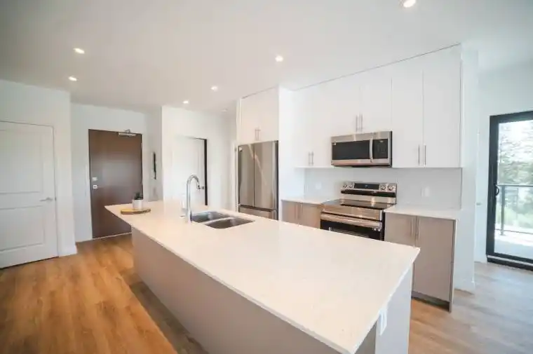 Step into a peaceful and stylish living experience at Rainbow Lake with this beautifully appointed 2-bedroom, 2-bathroom condo for lease. Located at 302-525 New Dundee Road, this 1055 square foot unit offers a refined layout designed for both comfort and functionality. The open concept living, dining, and kitchen space creates a bright and airy atmosphere, ideal for relaxing or hosting. The kitchen features stainless steel appliances and generous cabinetry, perfect for everyday cooking or special occasions. Enjoy morning coffee or evening sunsets from the large balcony overlooking the stunning natural setting of Rainbow Lake. Both bedrooms include walk-in closets, offering plenty of storage, while the primary bedroom features a private 3-piece ensuite. Residents have access to an impressive selection of amenities including a fitness center, sauna-equipped yoga studio, library, social lounge, party room, and pet wash station. Direct access to the Rainbow Lake conservation area adds to the appeal, providing a peaceful escape just steps from home. This is a rare opportunity to live in one of Kitchener’s most sought-after communities where nature meets modern convenience.