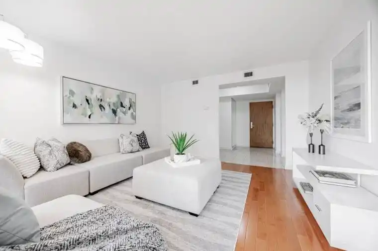 Boutique building with only 4 suites per floor. Large bedrooms and 2 full bathrooms. One parking spot and one locker. Wooden floors throughout. Great for entertaining. Large laundry room with lots of storage and built-in shelves. Primary bedroom has walk-in closet. 2nd bedroom combined with the den. Walking distance to two subway lines, library, restaurants, trendy shopping, schools, universities and parks. This property is ideal for downsizers and upsizers. Enjoy the quaint, lush garden on 2nd floor.