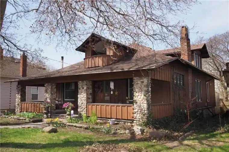 Absolutely charming, single detached 1 1/2 storey 3 bedroom home in a quiet neighbourhood steps from downtown Cambridge & all amenities. Main floor features a spacious family room with 1 of 4 wood burning fireplaces, a stunning new custom kitchen with quartz island, stainless steel appliances (including Miele dishwasher, gas stove, large fridge, wine cooler & microwave). Beautiful cabinetry with fantastic hidden drawers! Walk-out to the deck & hottub overlooking the tiered deck & yard. Massive front porch adds character to this special home. Updated main floor 3 pc bathroom with soaker tub, 2 bedrooms, laundry and second kitchenette (ideal for a possible inlaw suite with 2 separate entrances). The upper level loft is perfect for a primary bedroom or accessory apartment space including a 3 pc bathroom & balcony with it’s own exterior staircase! Basement finished with games room, utility space & tons of storage! The fully fenced private yard includes a lovely deck and covered hot-tub area. Steps down to the shed and a Detached Workshop that also has potential for many uses! Parking for 2+ cars. This is a one of a kind home!