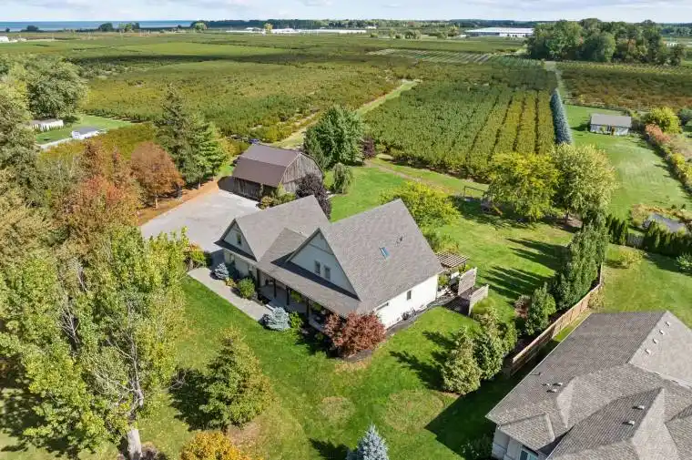Welcome to 411 Read Road, Niagara on the Lake where timeless charm meets modern convenience in the heart of wine country. This beautifully maintained home, built in 2011, offers over 2,400 sq ft of thoughtfully designed living space on a 1.2-acre lot, combining the peace of country living with the benefits of city water and a high end septic system. Step onto the large covered front porch, perfect for morning coffee or sunset views, and enter a grand foyer with an elegant sliding door concealing a functional back hall. Here you’ll find a spacious mudroom, laundry area, and access to the oversized triple garage. At the heart of the home is a warm and inviting living room featuring a cozy gas fireplace and two sets of garden doors that open to the back deck, offering seamless indoor-outdoor living. The dinette area easily accommodates a large table, flowing into a gorgeous kitchen with generous cabinetry, brand-new quartz countertops, and a stunning backsplash perfect for entertaining or everyday living. A neatly tucked-away office nook provides a quiet space to work or study. The main floor primary suite is a private retreat, featuring his and hers walk-through closets and a luxurious 4-piece ensuite with a soaker tub, corner shower, and stylish vanity. Upstairs, two massive bedrooms each boast walk-in closets and share a 4-piece ensuite, ideal for family or guests. The finished basement offers comfortable additional living space with in-floor heating, 9 ft ceilings, and a fourth bedroom. Outside, enjoy unobstructed orchard views, a huge deck, hot tub, and ample yard space perfect for kids, entertaining, or even adding a pool. A bonus barn offers dry storage, with a newer steel roof. Above the garage, theres potential for an in-law suite or studio, giving you options for extended family or additional income. If you’re dreaming of a country lifestyle without compromising on modern comforts, now is the time to make this Your Niagara Home.