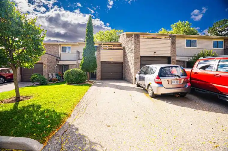 Spacious and stylish 3-bedroom, 3-bath townhome in a highly sought-after community! Freshly painted from top to bottom, this home features an open-concept living and dining area with a seamless walkout to a private, fenced backyard perfect for relaxing or entertaining. Enjoy sleek laminate flooring throughout and brand-new carpeting up the stairs. The bright galley-style kitchen offers ample counter space, breakfast space and functionality for everyday living. The primary bedroom boasts a walkout to a large terrace the perfect spot to unwind and take in beautiful sunsets. The finished basement offers a versatile recreation room or potential 4th bedroom, complete with its own 3-piece bathroom. A perfect blend of comfort, style, and functionality ready for you to call home! Upgrades include: Replaced fridge, range, washer, dryer 2024, Insulated and installed garage ceiling 2023, automatic garage door opener – 2023. Condo Corp. replaced all windows, excluding patio doors in 2023. Steps to transit, schools, shops & highways plus much more. Please see attached list of all upgrades!