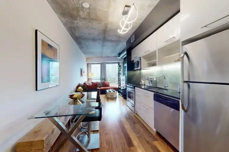 STUNNING Loft Style Condo! This bright and sleek 1-bedroom suite offers unobstructed panoramic city views and a bright, open-concept layout with 589 sq. ft. of interior space + A Balcony. The Large Bedroom Easily fits a king-sized bed, boasts a spacious walk-in closet, and offers direct access to the balcony for a relaxing moment overlooking the city! Industrial-chic finishes include 9ft exposed concrete ceilings, galvanized spiral ductwork, floor-to-ceiling windows, and carpet free floors throughout. The modern kitchen features sleek quartz countertops and stainless steel appliances, perfect for entertaining or everyday living! Located just steps to the Distillery District, Leslieville, St. Lawrence Market, Corktown Common Park, and scenic bike trails. Be ahead of the curve – steps to the future Corktown & Riverside/Leslieville Ontario Line stations! Don’t miss the Gorgeous Pool, Gym and Multiple Party Rooms as well!