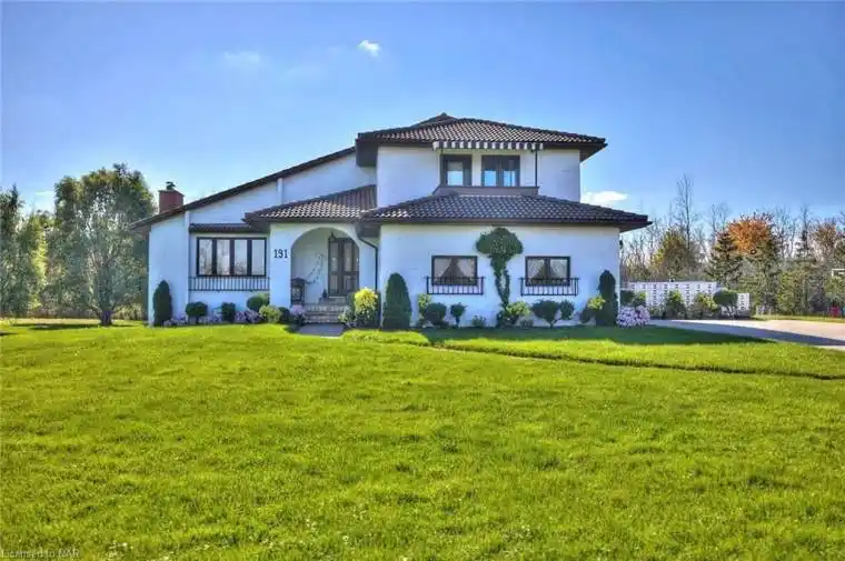 First time offered for sale! This solid custom-built, 3 bedroom / 2 bathroom home radiates Mediterranean flair and timeless craftsmanship. Situated on a private 3/4 acre lot within walking distance to the Niagara River, this unique and spacious two-storey residence has been lovingly maintained and is in pristine condition. The main floor showcases a formal dining/sitting room featuring a solid marble wood-burning fireplace, French doors, and gleaming parquet floors. The eat-in kitchen overlooks a sunken living room with a second fireplace and a three-season sunroom that opens to the tranquil backyard. You’ll also find a main-floor laundry/mudroom, a 3-piece bathroom, and an attached double-car garage for convenience. Upstairs offers three generously sized bedrooms, an office/craft room, and a spacious 5-piece bathroom. The primary bedroom includes a walk-out balcony and a walk-in cedar-lined closet. Experience this one-of-a-kind home for yourself and discover everything it has to offer…before it’s gone!