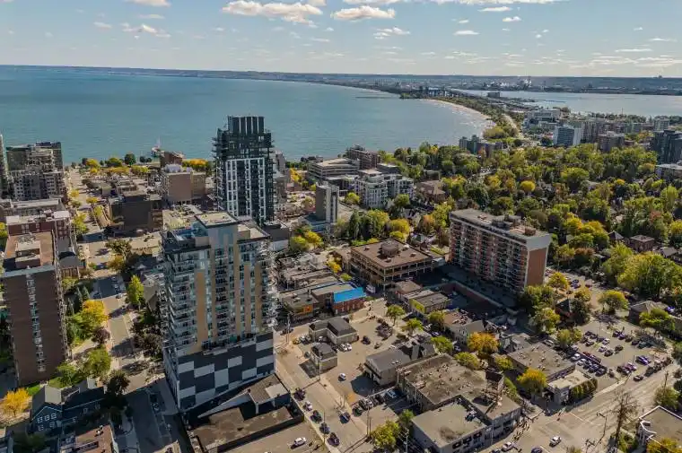 Experience peak urban living in this rare, contemporary corner suite in the prestigious Berkeley Condos, perfectly positioned in the heart of downtown. Steps from Burlington’s vibrant waterfront, premier dining, boutique shopping, cultural events, and everyday conveniences, this residence offers the ultimate lifestyle experience for those who value luxury and location. This spectacular South-East facing suite boasts a stunning open-concept design highlighted by floor-to-ceiling, wall-to-wall windows, soaring 9 ceilings, and direct lake and escarpment views. Hardwood floors flow throughout the expansive living and dining areas, seamlessly extending to a remarkable 200 sq ft wraparound balcony-ideal for morning coffee, evening cocktails, or simply soaking in the panoramic vistas. The chef-inspired kitchen is an entertainers dream, featuring an 8 quartz island with breakfast bar, sleek built-in stainless steel appliances, tile backsplash, range hood, and a dedicated coffee bar. The serene primary retreat offers a walk-in closet and spa-like 4pc ensuite with oversized vanity, luxurious soaker tub, and glass walk-in shower. An additional spacious bedroom and modern 3pc bathroom provide versatility for guests or a private office. In-suite laundry, two parking spaces, and two storage lockers including one super locker add exceptional convenience. The Berkeley lifestyle is second to none, offering 24-hour concierge, a fully equipped fitness centre, two guest suites, party and games room, and an impressive rooftop terrace with breathtaking views. A true must-see this is downtown luxury living at its finest.