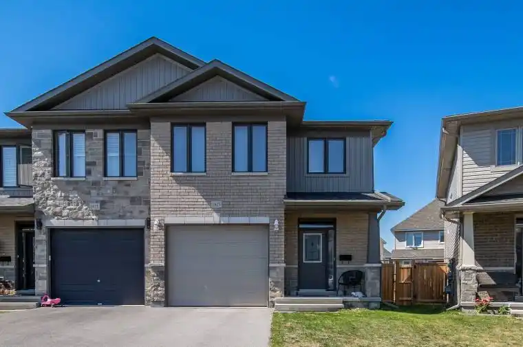 1425 Monarch Drive is a beautifully appointed semi-detached home in the sought-after community of Woodhaven. This custom Georgian Bay model by Braebury Homes offers an impressive 1,854 sq/ft above grade plus a fully finished basement, providing plenty of space for todays modern family. The main floor boasts an open-concept layout filled with natural light, highlighted by upgraded tile and rich engineered hardwood flooring. The chef-inspired kitchen features timeless white cabinetry, quartz countertops, stainless steel appliances, subway tile backsplash, a walk-in pantry, and an island with breakfast bar seating – perfect for casual meals or entertaining. Upstairs, you’ll find three spacious bedrooms, including a massive primary suite complete with a walk-in closet and four-piece ensuite – a convenient second-floor laundry room and full main bathroom complete the upper level. The finished lower level offers a generous rec. room, ample storage, and a rough-in for a three-piece bathroom, giving you flexibility to customize the space to your needs. Step outside to enjoy a fully fenced backyard with a deck off the kitchen, ideal for summer barbecues or relaxing outdoors. This unique design also allows for an oversized 13 x 20 garage plus ample driveway parking. Located on a quiet street just steps to a brand-new school, nearby parks, and green spaces, with quick access to shopping, Highway 401, and public transit – this is an unbeatable combination of comfort and convenience. Don’t miss your chance to call this stunning home yours. Book your viewing today!