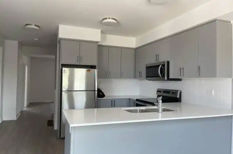 Brand New 2 Bedroom,2 Full Bath Townhouse Located In One Of The Most Desirable Communities Of Waterloo. This Multi Level Townhouse With Great Features A Comfortable Layout With Brand New Furnace And Air Conditoner. The Main Level Eat- In Kitchen Cabinetry, Laminate Flooring. Lower Level Primary Bedroom With A Walk-In Closet And 3 Piece Bath, The Main Level Features One Large Bedroom And 3 Pc Bathroom And One A Large Closet, The Lower Level Has Direct Access To The Garage. Located Close To Public Hospital, Public Transit , Go Station, Google Office And Other It Companies ,Bus Routes, Parks, Clinics, Starbucks, Ev Chargers, And Much More! Tenant Pay Utilities