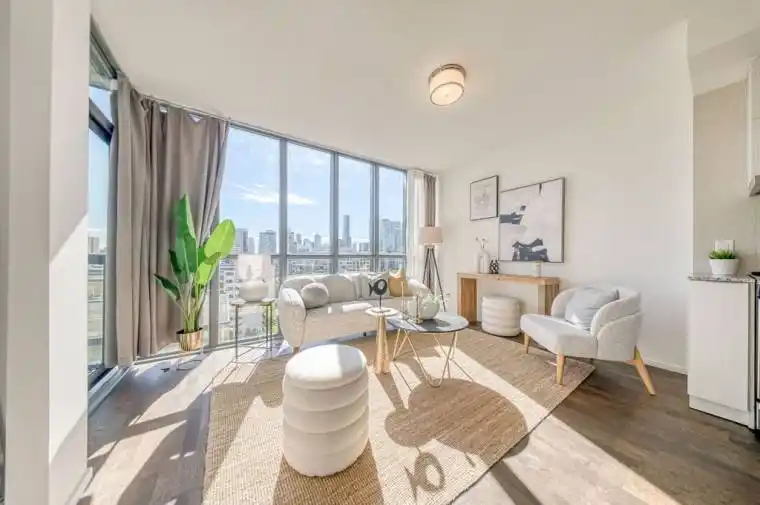 Welcome to suite 1103 at 101 Charles St East, where luxury meets convenience. This exceptional 1-bedroom plus den unit offers a spacious 741 sq ft of meticulously designed living space, plus a sun-drenched 55 sq ft south-facing balcony perfect for your morning coffee or evening cocktails. Enjoy the best of city living with Yorkville’s upscale shops, gourmet dining, and subway access just moments away. Step inside to an inviting open-concept floor plan highlighted by dramatic 9-foot ceilings and expansive floor-to-ceiling windows that capture an abundance of natural light. The contemporary kitchen, complete with a large island, is a chef’s delight. The highly functional den, featuring a pre-installed sliding door, easily transforms into a dedicated home office or a cozy second bedroom. Freshly painted and move-in ready, the primary bedroom offers an impressive walk-in closet. Experience sophisticated city living at its finest!