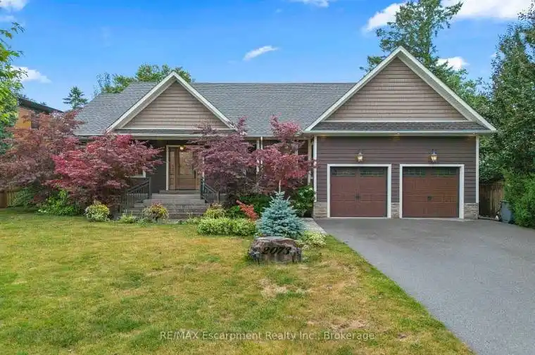 Discover this stunning custom-built bungalow nestled in prestigious Southeast Oakville, where architectural excellence meets family comfort. This exceptional property showcases 4,356 square feet of thoughtfully designed living space on a premium-sized lot with an expansive backyard perfect for outdoor activities. The main floor impresses with soaring 10-foot ceilings and gleaming hardwood floors throughout. Enter through formal dining and living areas, where a gas fireplace creates warmth while 8-foot sliding doors flood the space with natural light. The open-concept kitchen stands as the home’s culinary centerpiece, featuring granite countertops, a Bertazzoni gas stove, and distinctive Belfast sink. The breakfast area provides convenient deck access for seamless indoor-outdoor entertaining. The luxurious primary bedroom offers a five-piece ensuite complete with clawfoot soaker tub, spacious walk-in closet, and French sliding doors leading to the deck. Two additional generously-sized bedrooms complete the main level, ensuring comfortable family living. The finished lower level expands your living options with a large recreation room featuring its own gas fireplace, dedicated games area, wet bar, laundry facilities, and two additional bedrooms ideal for guests or extended family. Outside, the expansive deck provides an ideal entertaining space, while the double-wide driveway accommodates six vehicles plus a two-car garage. This quiet, family-oriented neighbourhood offers proximity to top-rated schools including Oakville Trafalgar High School, Deer Run Park for recreation, convenient grocery shopping at Sobeys Maple Grove, and excellent transit connections. Experience the finest Southeast Oakville living in this move-in ready home. Luxury Certified.