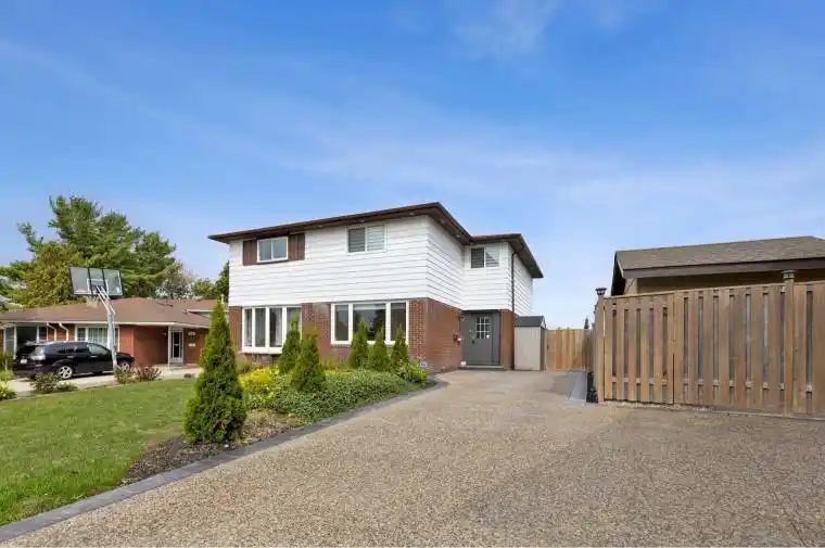 Must See: Welcome to 122 Mooregate Crescent! A fully renovated 4+1 bedroom semi-detached home with a walk-out basement.The home features a custom exposed aggregate concrete driveway with parking for 4 vehicles. Inside, you’ll find a bright, open-concept main floor with premium SPC luxury vinyl flooring, pot lights throughout, a fireplace, and zebra blinds. The modern kitchen offers sleek cabinetry, quartz countertops and backsplash, stainless steel appliances, and a waterfall island ideal for both daily use and entertaining. Upstairs includes 4 generous bedrooms and a renovated 4-piece bathroom (2025).The finished walk-out basement includes a spacious rec room with a custom wall unit(entertainment system included), bedroom/den/office area, and a laundry/utility area with plenty of space. Can be easily converted to an in-law suite or a separate rental unit.Step outside to a private backyard featuring a concrete patio with shade cover (patio furniture included), two storage sheds, and outdoor lighting.Additional updates include: Furnace (2019) + Central A/C (2023)Located just steps from Victoria HillsCommunity Centre, steps from Hillside Public School, close to shopping, parks, and other amenities. This is a perfect family home, book your showing today! Some rooms have been virtually staged to help you visualize the space’s potential.
