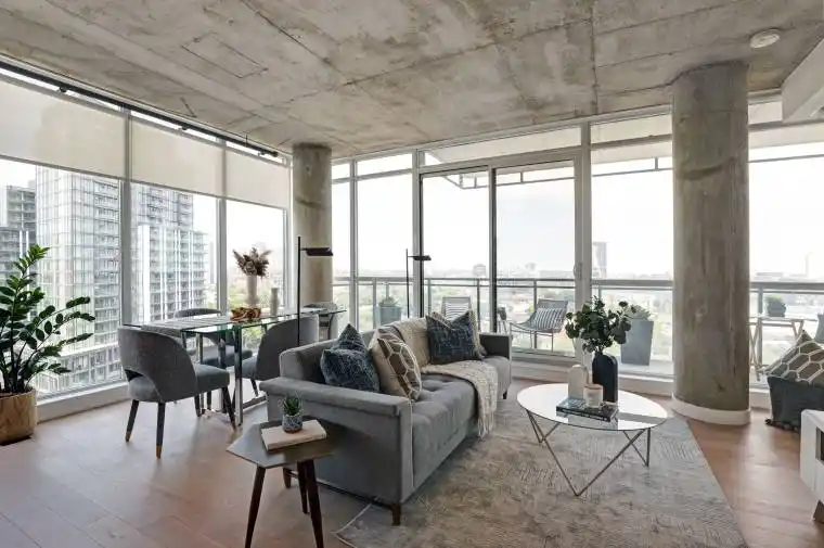 Experience contemporary sophistication in this stunning southwest corner residence at one of the most coveted addresses in the Lower East Side. Designed with an exceptional sense of space and light, this 1-bedroom, 1-bath suite showcases floor-to-ceiling glass, exposed concrete ceilings, and warm hardwood floors, creating a seamless blend of modern elegance and industrial edge.An expansive open-concept layout flows effortlessly onto a large private terrace (129 sq. ft.), perfectly suited for entertaining or quiet evenings overlooking the city skyline and shimmering lake views.Offering 624 sq. ft. of thoughtfully designed interiors, this soft loft embodies refined urban living at its best. Ideally positioned just steps from the Distillery District and with the streetcar at your door, 318 King delivers the ultimate in downtown convenience and style. Locker Included.