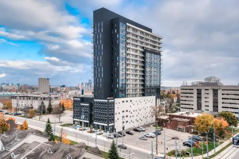 Welcome to CIRCA 1877, where the comforts of home blend seamlessly with upscale hotel-style amenities. This sun-filled 1-bedroom, 1-bathroom condo offers minimalist living at its finest. With clean white walls and elegant wood flooring throughout, the space feels open, airy, and modern. The sleek kitchen features hidden appliances that maintain a streamlined, clutter-free look, perfect for those who appreciate simplicity and style. Enjoy breathtaking views of Downtown Kitchener from the large bedroom windows and your generous 205 sq. ft. private balcony-ideal for morning coffee or evening relaxation. Convenience is key, with in-suite laundry and extra storage space for added functionality. But the real highlight lies in the building’s amenities: unwind in the lounge, stay active in the fitness and yoga studio, take a dip in the pool, or host friends at the public BBQ area. There’s even a shared co-working space for those who work remotely. Located at the crossroads of Uptown Waterloo and Downtown Kitchener, you’re steps from the LRT and GRT stops, and just around the corner from local favorites like Vincenzo’s and Bauer Kitchen. With Waterloo Park just up the street, you’re perfectly positioned to enjoy the best the city has to offer. Luxury, lifestyle, and location-it’s all here at CIRCA 1877.