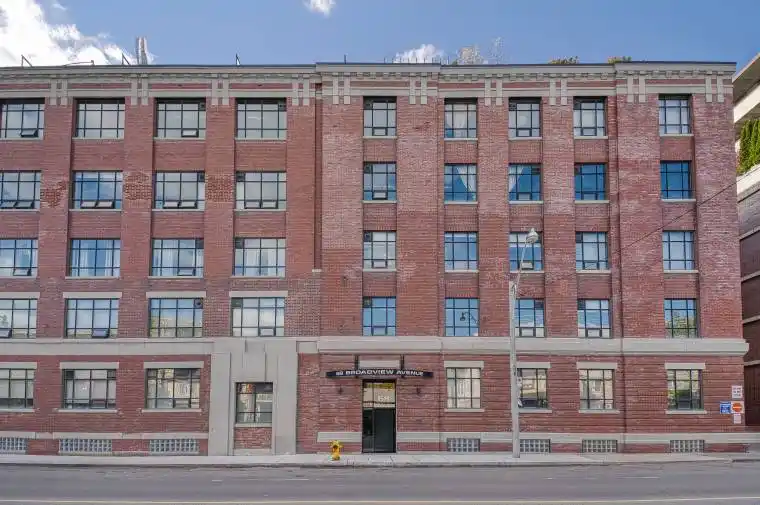 Experience true loft living at the iconic Broadview Lofts! This stunning hard loft conversion blends authentic character with modern comfort. Featuring an open-concept and highly functional layout, the space is flooded with natural light from expansive west-facing windows. Soaring over 10-ft ceilings, polished concrete floors, exposed brick walls, and original industrial beams create an inspiring and stylish living environment perfect for both relaxing and entertaining. The spacious living and dining area offers flexible design options to suit your lifestyle, while the large bedroom is a serene retreat, complete with a custom organized closet and built-in wall shelving for added convenience and storage. Ideally located just steps from trendy Queen Street East, enjoy easy access to top restaurants, cafes, shops, transit, and the Don Valley trail system. This suite includes one underground parking space and a storage locker. A unique opportunity to lease in one of Toronto’s most sought-after and authentic loft buildings – welcome to the Broadview Lofts.
