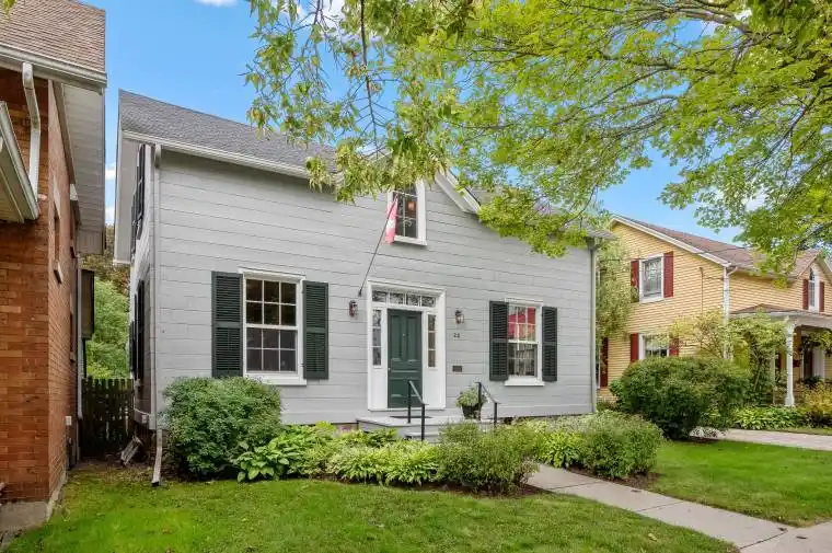 Nestled in the desirable west end of Port Hope’s Englishtown, this rare 1860s wooden Ashlar residence beautifully combines historic character with modern comfort. Thoughtfully restored “back to the bones” under its current ownership-with updated electrical, insulation, and plumbing-this home stands out as one of the few remaining examples of its kind in the area.Inside, expansive original windows fill the rooms with natural light, creating bright and airy interiors. The main floor features a welcoming eat-in kitchen located in the rear tail, just steps from a lush private perennial garden and a detached garage. A versatile library or den on this level, complemented by a full bath, offers the flexibility for a main-floor bedroom if desired.Upstairs, two inviting bedrooms include a spacious, double-sized primary suite, with another full bathroom conveniently nearby.Perfectly situated just steps from Walton and Ridout Streets, this well-maintained home offers easy access to Port Hope’s historic downtown, the Capitol Theatre, and is only a short drive to Trinity College School. Surrounded by other distinguished period homes, this property presents a rare opportunity to own a piece of Port Hope’s history in one of its most charming and sought-after neighbourhoods.