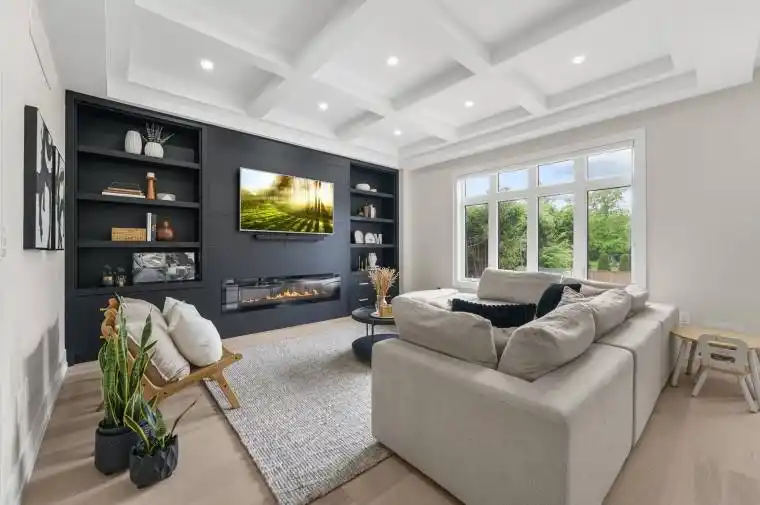 Experience modern luxury with ultimate privacy in Willowdale West. An entertainer’s dream, the gourmet kitchen showcases a statement waterfall island, custom cabinetry, and high-end appliances. A sophisticated executive office provides a quiet workspace. The primary suite is a spa-like escape, complete with a soaker tub, separate rain shower, and custom-designed walk-in closets. Offering privacy for the whole family, every bedroom features its own full ensuite. The finished lower level, with its impressive 11-foot ceilings, adds incredible, versatile living space. This exceptional property backs onto open green space, guaranteeing tranquility with no homes behind you.