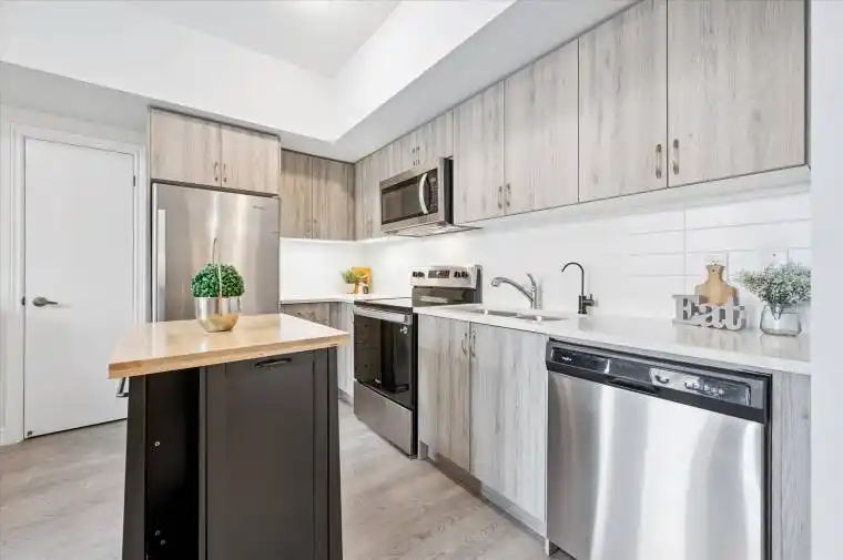 Welcome to 252 Law Drive, a modern, ground-level stacked townhome offering easy, stair-free living in one of Guelph’s most convenient and community-focused neighbourhoods! Whether you’re a first-time buyer, downsizer or professional seeking a condo alternative with a private entrance, attached garage and added privacy, this home delivers on every front. Unlike most condos, you’ll enjoy 2 full parking spaces – one in the garage & one in the driveway. A rare & valuable bonus in this price point! Step into the stylish, open-concept kitchen featuring sleek modern cabinetry, quartz countertops, subway tile backsplash & stainless steel appliances. The layout flows effortlessly into the bright dining space &spacious living room with laminate flooring and a large picture window that floods the home with natural light. The bedroom features an expansive window, while the 4-piece bathroom offers quartz counters and a beautifully tiled shower/tub combo. This home offers direct access from your garage, in-suite laundry, and even your own outdoor terrace! Low condo fees help make this home an incredibly affordable option. Located just steps from Hammill Park, this is a dream for pet owners & nature lovers. Plus, you’re minutes from shopping, trails & major commuter routes. With a great location, modern finishes and a layout that fits your lifestyle – this home is truly the best of simplified living without sacrificing space, style or storage!