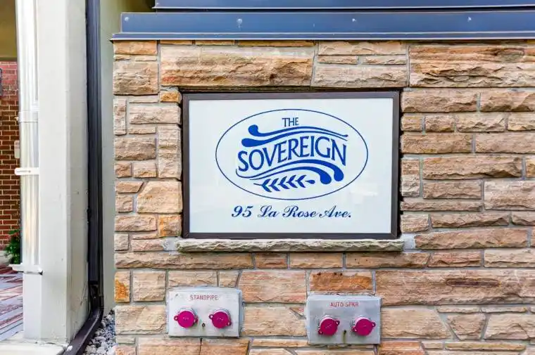 Smaller boutique building with adjacent parkland and the TTC at the door. The Sovereign is a wonderful “community” of residents. This two bedroom two bathroom suite is 1160 square feet and looks south-east over trees and La Rose Park towards downtown. It is freshly painted with spacious rooms, and new vinyl plank flooring throughout. Eat-in kitchen, large primary bedroom with four piece ensuite bath and walk-in closet. Generous “L” shaped living and dining room. Move in condition. Two walkouts to private balcony overlooking the park. This building has a very secure reserve fund and has recently been updated throughout. The condo fees are all inclusive (heat, hydro, water, cable TV, internet, telephone, common elements, building insurance, parking and locker). Onsite management and security, lovely gardens, one bus to subway and soon to be walking distance to Eglinton West LRT. Shopping and schools are nearby. This is a non-smoking building and there are restrictions regarding pets. Welcome to your new home. See you at the next building BBQ or at the Christmas party.