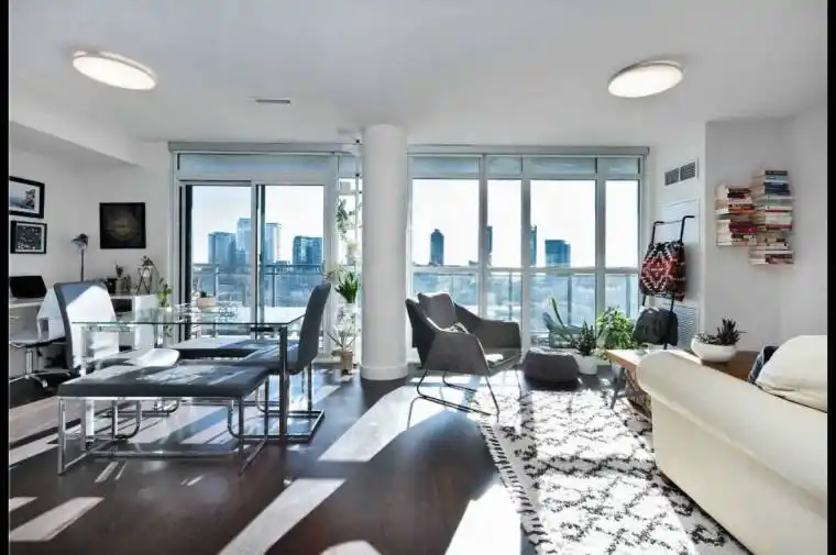 This spacious 694 sq. ft. 1+1 bedroom condo offers stunning, unobstructed views that will take your breath away. Floor-to-ceiling, wall-to-wall windows fill the space with natural light and open to a large balcony overlooking Lake Ontario – the perfect spot for your morning coffee or evening unwind. The open-concept layout features 9-ft smooth ceilings, laminate flooring, and a modern kitchen with granite countertops and a breakfast bar, ideal for entertaining or working from home. The den offers great flexibility as a home office or guest space. Enjoy the best of downtown living, just steps to TTC, parks, restaurants, shops, and all the energy of King West.