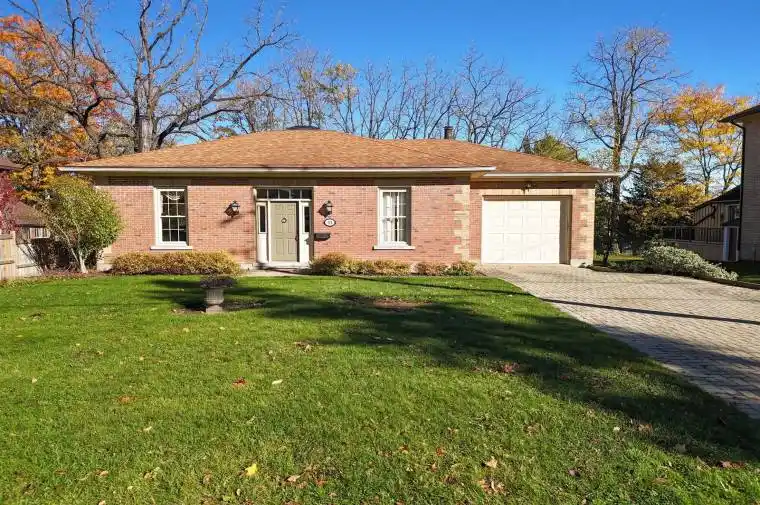 Welcome to 35 Ontario St. N. in the historic town of St. Marys, Ontario. Have you been searching for the perfect home that breaks the mould and stands out as a unique piece of property to call your own? This 1988 brick bungalow is the one! Built to showcase the Sellers’ collection of antiques and collectibles and to celebrate their love of old homes while enjoying the convenience of new. 35 Ontario N. is a Regency-influenced Ontario Cottage style of architecture with a distinct nod to traditional British interior design. A large, bright foyer welcomes you into the home and features a vaulted ceiling with a skylight. Maple floors flow into the front living room and formal dining room with French panelled doors and built-in china cabinet to showcase your crystal and porcelain sets. Large low windows allow ample natural light into the home. On the lower level is a family room with decorative beams, wood parquet floors and wall-to-wall bookcases, evoking a very real sense of true old-world charm. An exterior door leads from here to a large backyard featuring mature trees and gardens, where even the wooden storage shed speaks of historic England. Other classic features of this custom build include high ceilings, ornate corner mouldings in the living/dining rooms, two wood fireplaces, wide-board trim, artistically-designed plaster crown moulding in the foyer, antique light fixtures, arched doorways, wall niches, and coffered ceiling. All of this combines with function while paying homage to stately elegance and time-honoured design. 1+3 bedrooms, 2 full baths, a den, living room, eat-in kitchen and family room offer far more square footage than one might think when looking from the road. Come and see this charming enigma of a home, located in the town’s established West end close to the River Thames and downtown core. You won’t be disappointed you did.