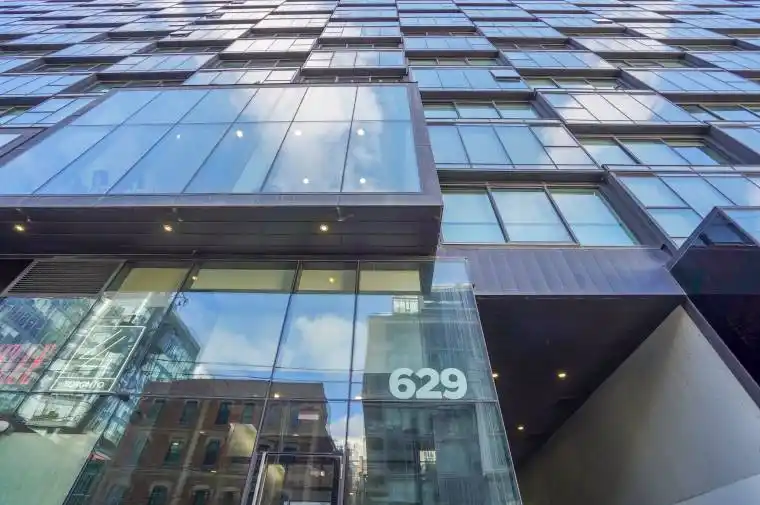Welcome to 513-629 KING ST W. Situated in the prestigious Thompson Residences in the vibrant King West district with premier restaurants, nightlife, and urban amenities within walking distance, it features a serene south-facing treetop view bathed in natural sunlight, 558 sq ft of interior space plus a 75 sq ft balcony, expansive wide parking with easy access to Lakeshore and Gardiner Expressway, abundant visitor parking, 9 ft ceilings with exposed concrete, hardwood floors, floor-to-ceiling windows, a modern kitchen with quartz countertops, exclusive access to the Lavelle rooftop pool and bar, a two-level fitness center, 24-hour concierge service, and direct TTC at the front door-the unit is vacant, freshly painted, and ready for immediate occupancy.