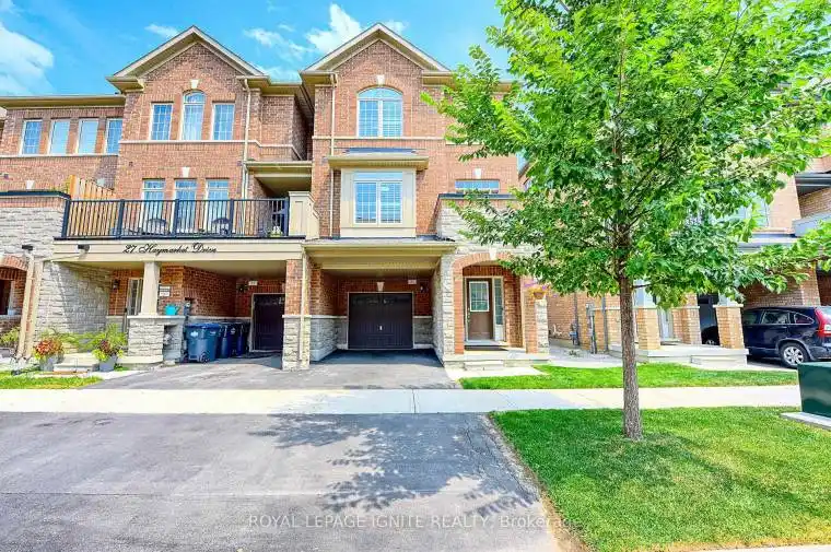 END UNIT townhome in the urban living Northwest Brampton. Spacious modern three-storey townhouse ideal for family living. 9 feet ceilings, 3 bedrooms, 3 bathrooms, with plenty of light throughout. Step into the inviting ground-level foyer with convenient garage access perfect for cozy living room or office room setup. The spacious primary suite with a walk-in closet and a sleek 3-piece ensuite. The second floor with a contemporary kitchen with living and dining with breakfast areas. Enjoy the private balcony from the living room. Located close to parks, highly rated schools, Mount Pleasant GO, and other amenities.