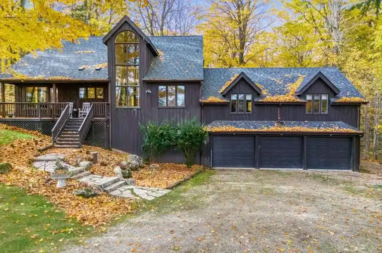 Your Private Forest Retreat Awaits! Nestled among towering hardwoods on a quiet cul-de-sac in an exclusive estate subdivision, this stunning 4,200 sq. ft. multi-level contemporary chalet offers the perfect balance of nature, luxury, and comfort. Just minutes from Mansfield Ski Club and the Mansfield Outdoor Centre, this spacious retreat is designed for family fun and year-round enjoyment. Step inside the classic open-concept A-frame great room, featuring cathedral ceilings, a 30′ x 20′ living space with a cozy fireplace, and expansive windows that frame enchanting forest views. The chef’s kitchen boasts a center island with breakfast bar, built-in appliances, ceramic floors, and warm pine cabinetry, creating an inviting space for entertaining and everyday living. There’s truly something for everyone here – gather for movie nights in one of two family rooms, unwind in the outdoor hot tub or sauna, enjoy friendly competition at the horseshoe pit or cozy up by the fire pit under the stars. The property also features a 6-car, 3-bay garage with a drive-through bay, a large workshop/boot room, and parking for 10+ vehicles. With propane cooktop and BBQ hook-up, wood stove, and propane stove, this home blends rustic charm with modern convenience. Whether you’re hosting a crowd or enjoying a peaceful weekend escape, this home offers breathtaking forest views from every room and an unparalleled sense of privacy. Only one hour from Toronto, yet a world away from the ordinary – discover your family’s next chapter in this extraordinary Mansfield retreat!