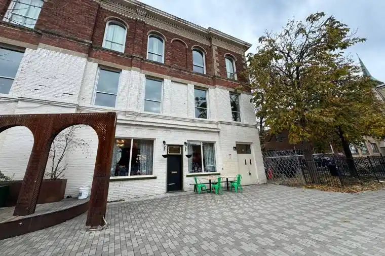 Recently renovated commercial space featuring high ceilings and a private oversized front patio. Excellent exposure directly across from Wendy’s and Queen St. West. Option to install signage along Queen St. West for maximum visibility and brand exposure. Ideal for retail, service, or café use in a high-traffic area.