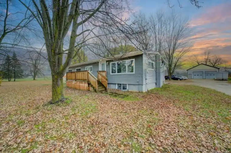 Country Bungalow on 1.39 Acres with Shop on the edge of Wroxeter. Discover country living at its finest with this charming bungalow set on a 1.39-acre triangular lot, backing onto peaceful farmland. Offering privacy, space, and practicality, this property is ideal for hobbyists, families, or anyone seeking a rural lifestyle with modern conveniences. The home features 3 bedrooms and 1 bathroom on the main floor with an inviting open-concept layout. The large kitchen is perfect for daily living and entertaining, complete with a generous island and gas range. Main floor laundry adds everyday convenience, while the spacious mudroom/foyer at the back of the home provides a functional entry for busy family life. The full, unfinished basement is a blank canvas, ready for you to create the rec room, additional bedrooms, or workshop of your dreams. Peace of mind comes from key updates in 2019, including new decks, insulation, propane furnace, central air conditioning, and hot water tank. A major highlight is the impressive 30ft x 50ft detached shop, built in 2022. Perfect for projects, storage, or a home-based business, it offers in-floor heat with a boiler system awaiting final hookup, two 10ft x 10ft overhead doors, and 13ft interior clearance height. The expansive side yard provides the perfect space for future projects, family reunions, a play area for kids, or simply enjoying the peace and quiet of country life. If you’re searching for a rural retreat with space to grow, amazing neighbours and a shop that checks all the boxes, this property is a must-see.