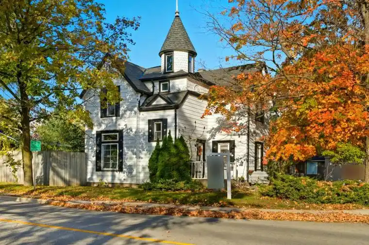 This stunning 2-storey heritage home is a rare piece of Hespeler’s history. Built in 1895, it has been beautifully maintained and thoughtfully updated, blending timeless character with modern comfort to create the perfect harmony of old and new boasting 3 Bedrooms, 2 Bathrooms and a usable basement. Said to be the very first prefabricated home built in Cambridge, this remarkable property sits proudly on a prime corner lot surrounded by beautiful mature trees, offering both privacy and curb appeal. Elegant Victorian accents frame the windows and doors, while gingerbread detailing graces the roofline and gables, an unmistakable nod to its rich past. Inside, wide-plank pine floors flow throughout, filling the home with warmth and charm. The oversized kitchen features a wood-detailed range, board-and-batten ceilings, and ample cabinetry, providing both function and classic style. Just off the kitchen, a bright sunroom offers flexibility, perfect as a home office, gym, or cozy sitting room. Main-floor laundry and a convenient powder room add everyday ease, while the spacious living room showcases lovely wainscoting and an inviting atmosphere. The formal dining room and secondary living space – ideal as a study, playroom, or creative retreat – complete the main level. A striking spiral staircase leads to the upper floor, where you’ll find 3 generous bedrooms and a 4 piece bathroom. Step outside to the expansive backyard, complete with an in-ground pool and plenty of room to entertain or simply enjoy outdoor living. A private driveway offers parking for up to 3 vehicles. Located just steps from schools, trails, transit, and everyday amenities, with quick access to major highways, this is your chance to own a true piece of Hespeler’s history!
