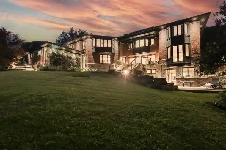 Discover a gem, custom-built as a multi-generational home, offering over 11,000 sq ft of luxurious living space on a rare 125ft double lot at the edge of the Humber Valley in the tree-lined Kingsway neighbourhood. This residence is a statement of contemporary elegance and sophistication, perfect for the discerning family.Inside, experience clean lines and exquisite details that enhance comfortable luxury living, including sound-isolated suites, Jatoba hardwood floors, stunning Persian serpentinite kitchen countertops, and heated stone floors for ultimate comfort.Accessibility is a key feature, with snow melt for the front porch, steps, ramp and driveway, a commercial 4×6 ft elevator, and 4 ft wide hallways to ensure effortless movement throughout the residence.The ground floor features a bright, open-plan living area that seamlessly integrates the chefs kitchen, dining, and living spaces, extending to a partially covered upper deck with a 17ft wide opening. A heated 3-car garage is cleverly positioned at the side of the house.The primary retreat is where luxury meets tranquility, featuring two generous walk-in closets and two ensuites one complete with a massage room and whirlpool tub offering tree-top views. Two additional spacious bedrooms, each with walk-in closets, share a thoughtfully designed bathroom suite with dual sinks, ample storage, and a separate area for added privacy. The oversized fourth bedroom also includes its own ensuite bathroom and walk-in closet, providing comfort and convenience for family or guests.The ground floor bedroom suite with a Juliet balcony offers a perfect retreat for guests.Venture to the finished lower level, where 10+ ft ceilings create a light and airy ambiance.This expansive space features a wide sliding door leading to the lower deck, ideal for entertaining.With multiple entertainment areas, including a stepped home theatre and sprawling park-like backyard, this home is designed for those who appreciate spacious comfort.