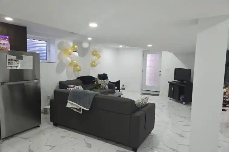 Beautiful beautiful +++ 10 Legal Basement Living area,Dining Area ,Very bright spacious Basement. 2 Bedroom,One Bath Kitchen etc. Freshly Painted Brand New , No Carpet completely Independent & Private Side Entrance include own washer & Dryer in Basement. Their own use walking School park in front of the house, Bus Stop 2 Mins Walking. One parking Spot included in the rent.Property is Vacant.Show anytime.
