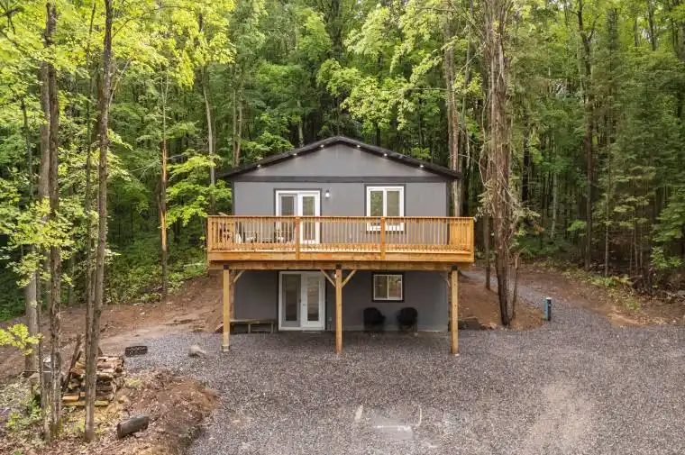 Motivated sellers! Welcome to 1057 Twelve Mile Lake Road, an exceptional opportunity for multi-generational living or income potential in the heart of Haliburton Highlands. This thoughtfully designed two-storey home offers over 2,000 sq. ft. of finished living space on a beautiful 1.3-acre lot, surrounded by nature and just minutes from town amenities. The home is ideal as a spacious single-family residence or can easily be converted into a dual-living setup with the simple addition of a second kitchen & laundry (both roughed in) on the lower level. With two private entrances, both levels can operate independently if desired. The upper level features two bedrooms, two full bath and an open-concept kitchen/living/dining area with garden doors leading to a full-length, east-facing deck – perfect for relaxing or entertaining. It has its own private side entrance. The lower level, fully above grade, includes a bedroom, full bath, bright living space and walkout with opportunity for a private patio or deck space. Its own front entrance makes it well-suited for an income or in-law suite conversion. Additional features include ICF construction for energy efficiency, 200-amp service, wood exterior and a landscaping canvas ready for your personal touch. Located just 5 minutes to a public beach, 2 km to the boat launch and within minutes of the popular Rhubarb and Peppermill restaurants. County-owned trails behind the property ensure long-term privacy and nature access, with no future development permitted. Just 9 km from both Blairhampton and Minden golf courses. A flexible layout, peaceful setting and strong potential for secondary living make this property a rare and rewarding find. Versatile, well-located and full of potential, this is country living with value-added options! View video below, then book your viewing. Don’t miss out on making this your new country home!